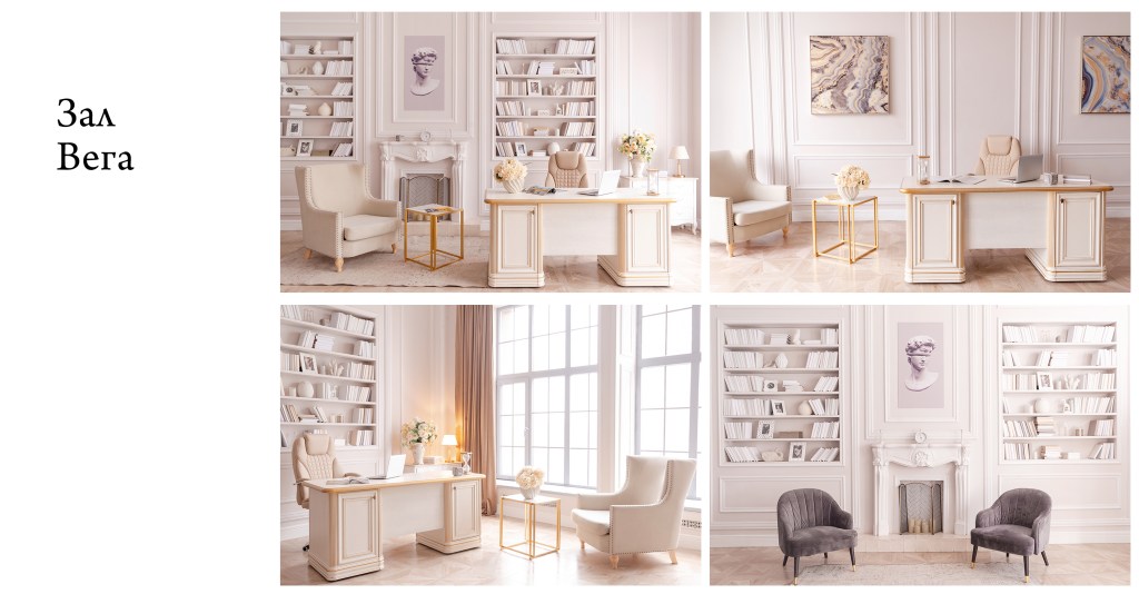 Некоторые примеры залов фотостудий в кабинетном стиле